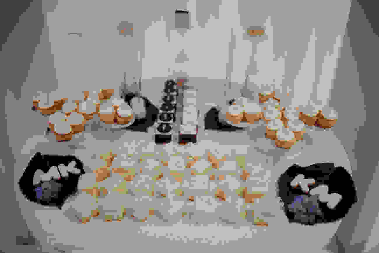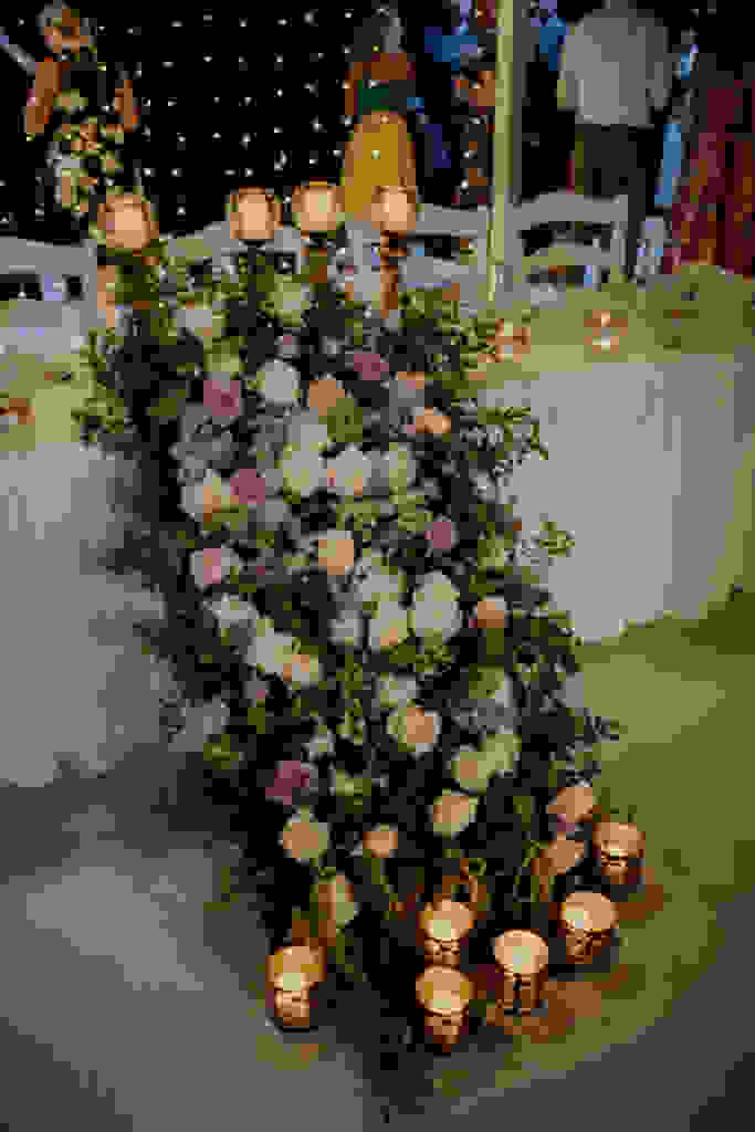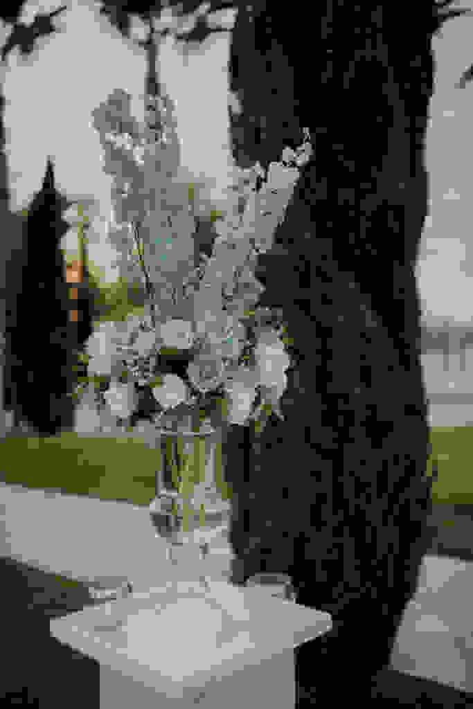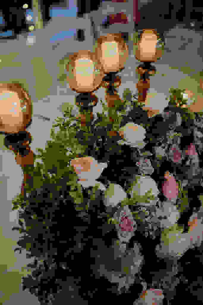 “Πάντα ήξερα πως φανταζόμουν την ημέρα του γάμου μου, μου άρεσε πολύ να ανακατεύομαι σε ότι αφορούσε το θέμα, άλλωστε γι’αυτό τον λόγο εμπιστέφτηκα την Έλενα Φιλίππου για όλη την οργάνωση και διακόσμηση που ανέλαβε, καθώς και τις δικές μου ‘απαιτήσεις’ σε κάθε μου τηλεφώνημα. Επιλέξαμε κυρίως γαλάζια delphinium, άσπρα, baby pink, και dusty purple David Austin roses, γαλάζιες και άσπρες ορτάνσιες, πρασινάδα και πολλά άλλα που δεν θυμάμαι. Η ανθοδέσμη μου ήταν εξ’ολοκλήρου γεμάτη με διάφορα είδη roses σε αποχρώσεις του ρόζ. Η Έλενα έκανε τρομερή δουλειά σε ότι αφορά την διακόσμηση αφού μου αρέσουν τόσο πολύ τα λουλούδια. Το style του γάμου μας ήταν ρομαντικό και elegant. Επίσης η διακόσμηση του candy table από την Αγγέλα Αριστίδου του Vienna Boutique ήταν φανταστική!”